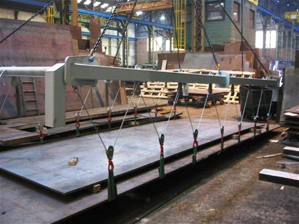 Nous concevons différents types de palonniers : monopoutre, multipoutres, en H, en cadre, en croix, en Y, en T, pour big bag.. nous les adaptons en fonction de votre problème de levage (hauteur, largeur, longueur, poids, accessoires, acier).
